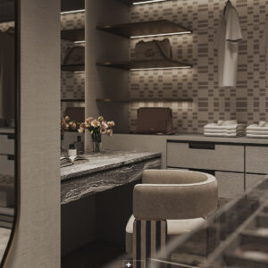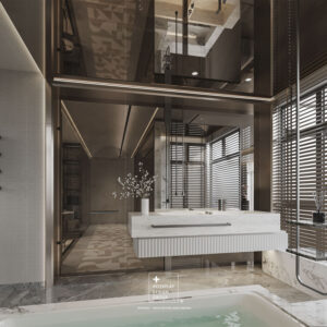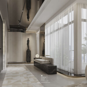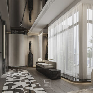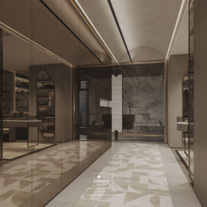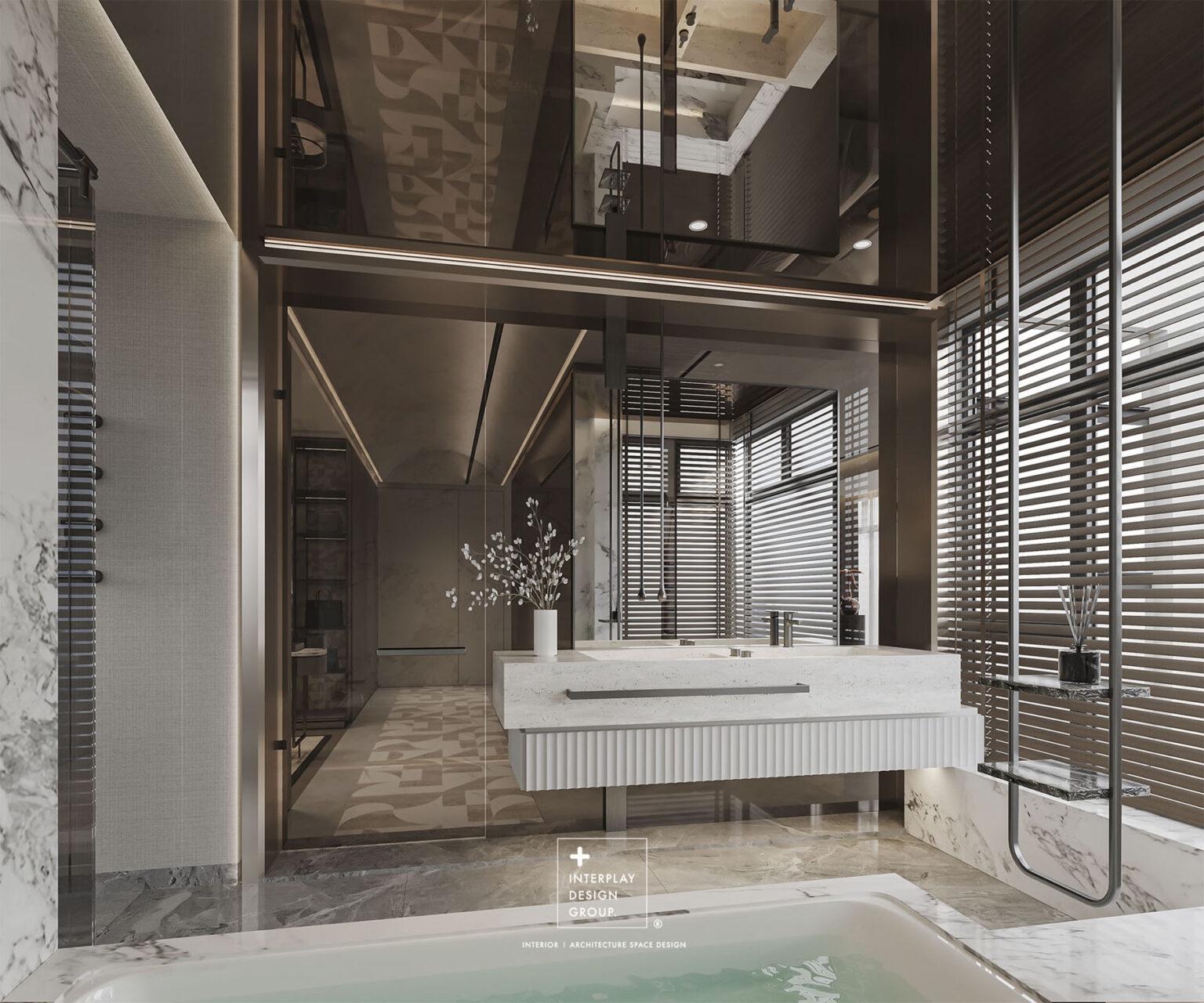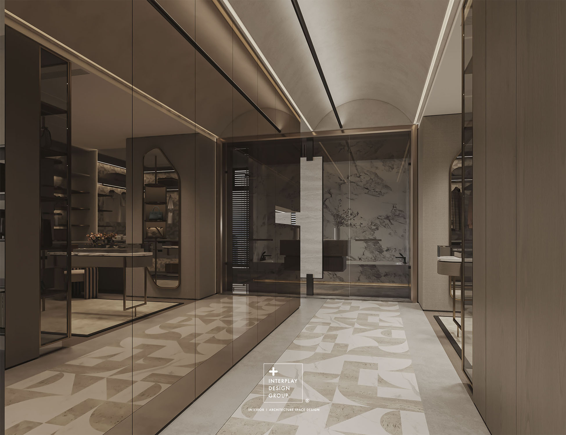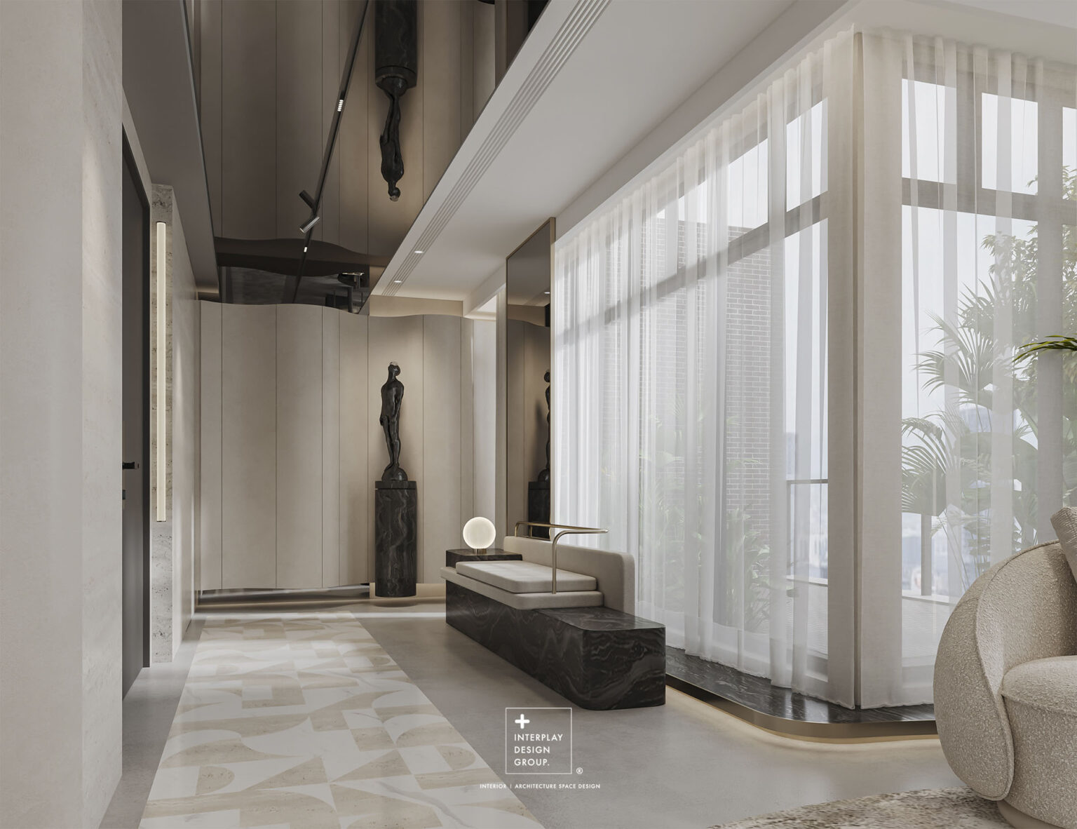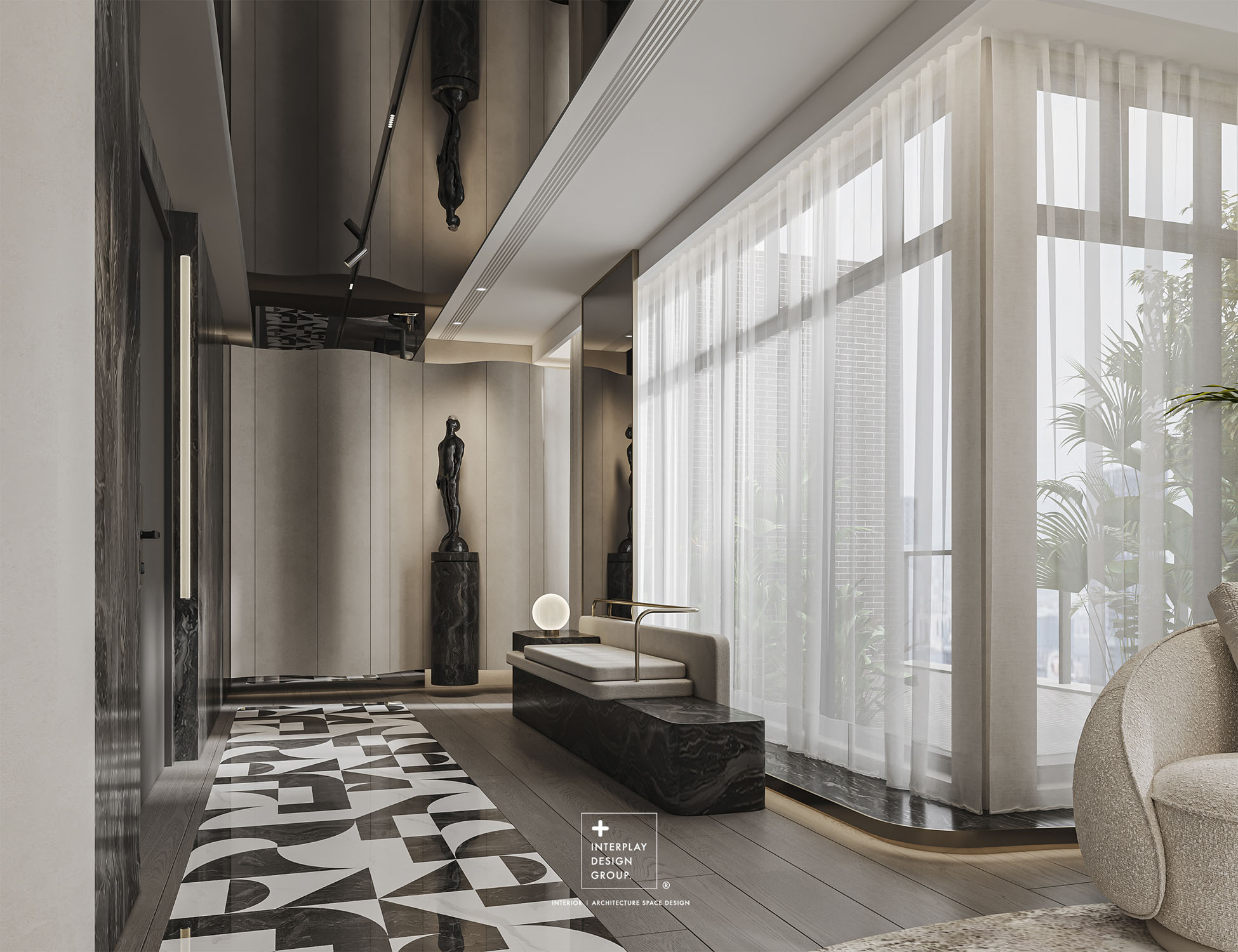 利用鏡面材質與金屬的反射特性,將空間無限延伸,讓走廊與轉角轉化為如美術館般的藝術長廊。