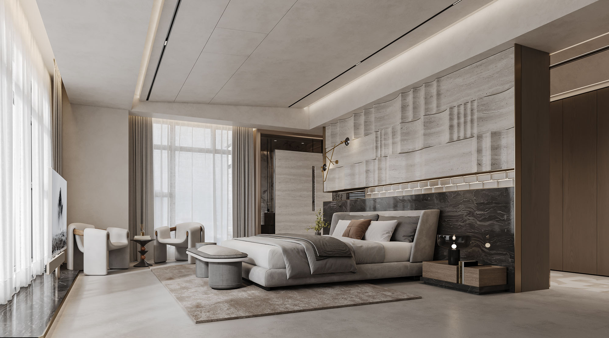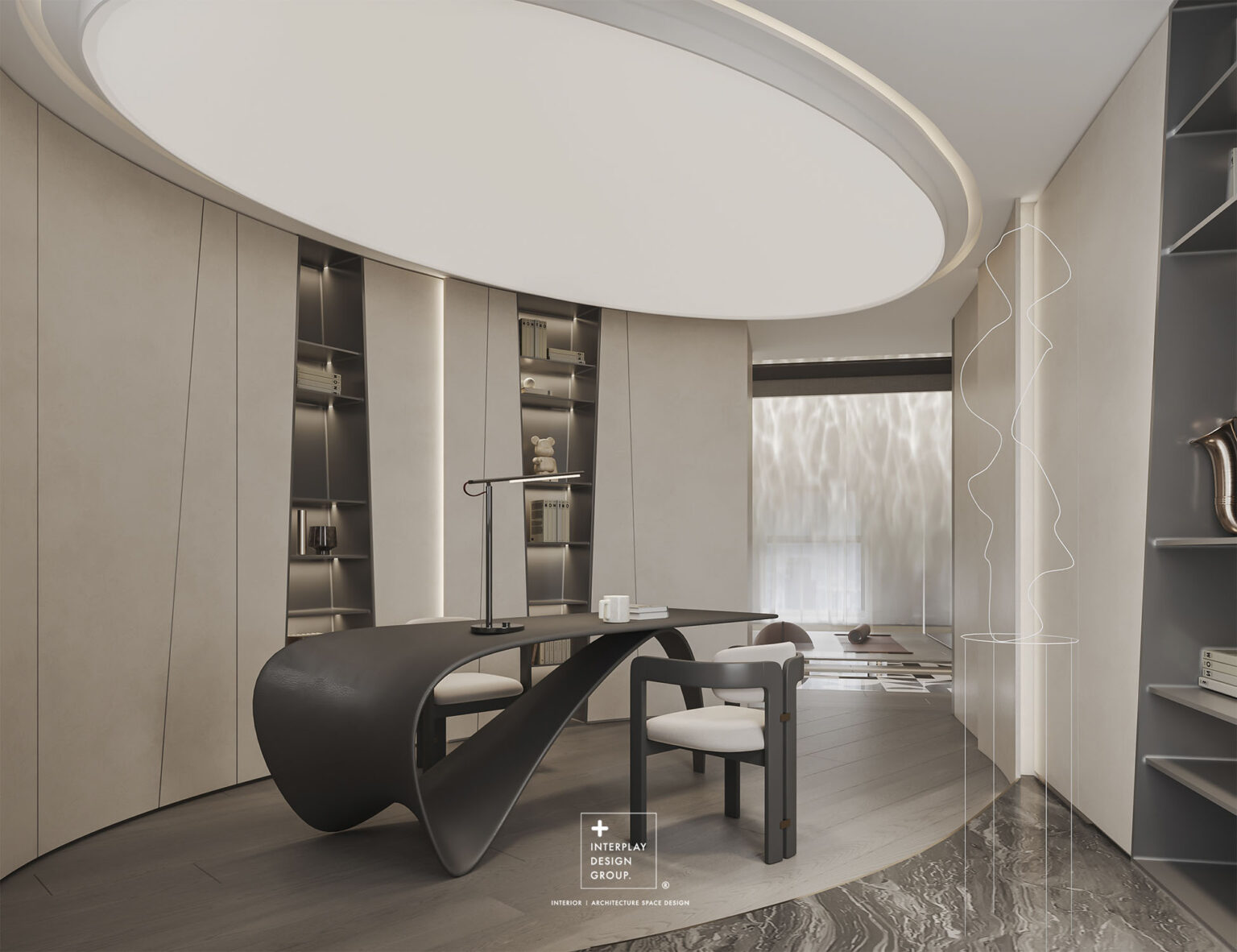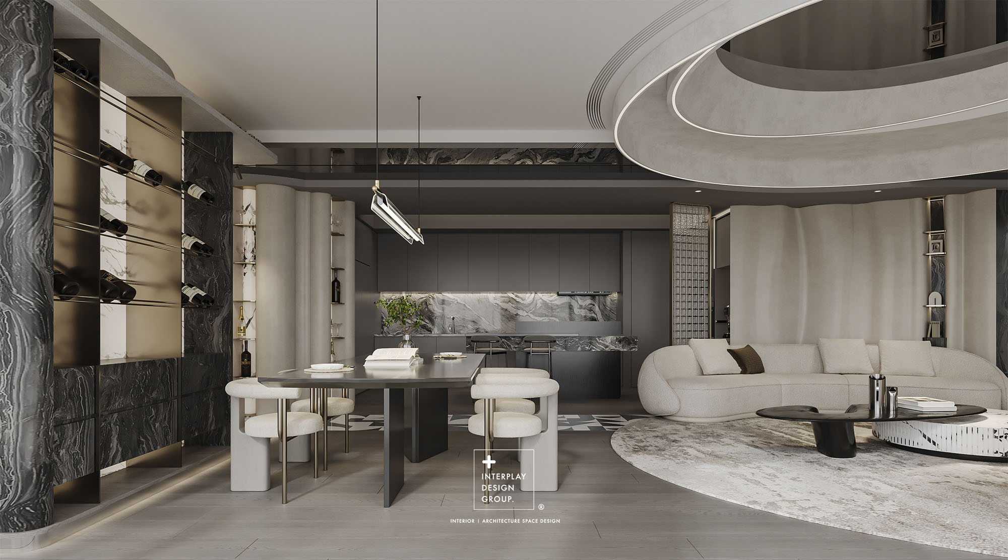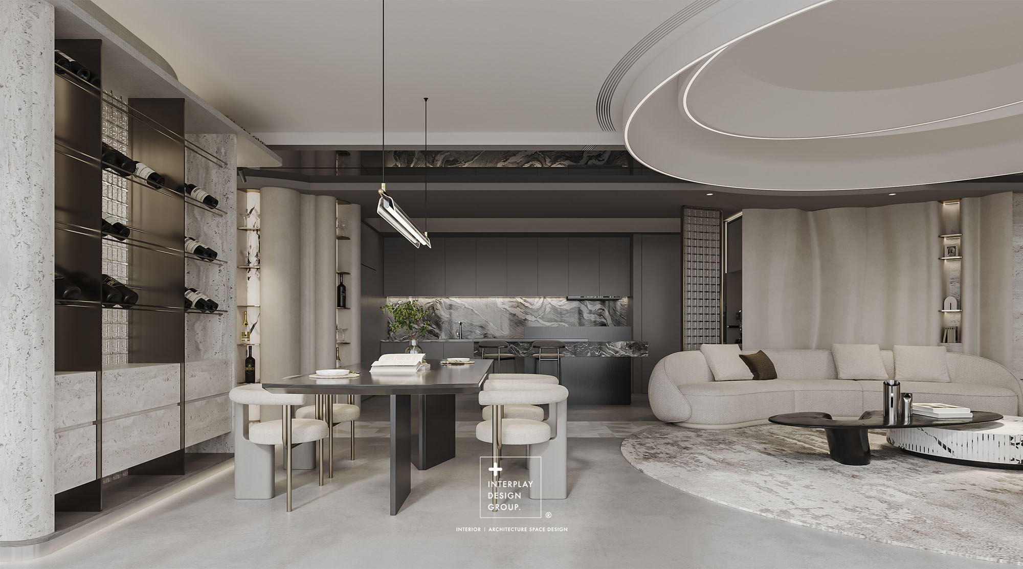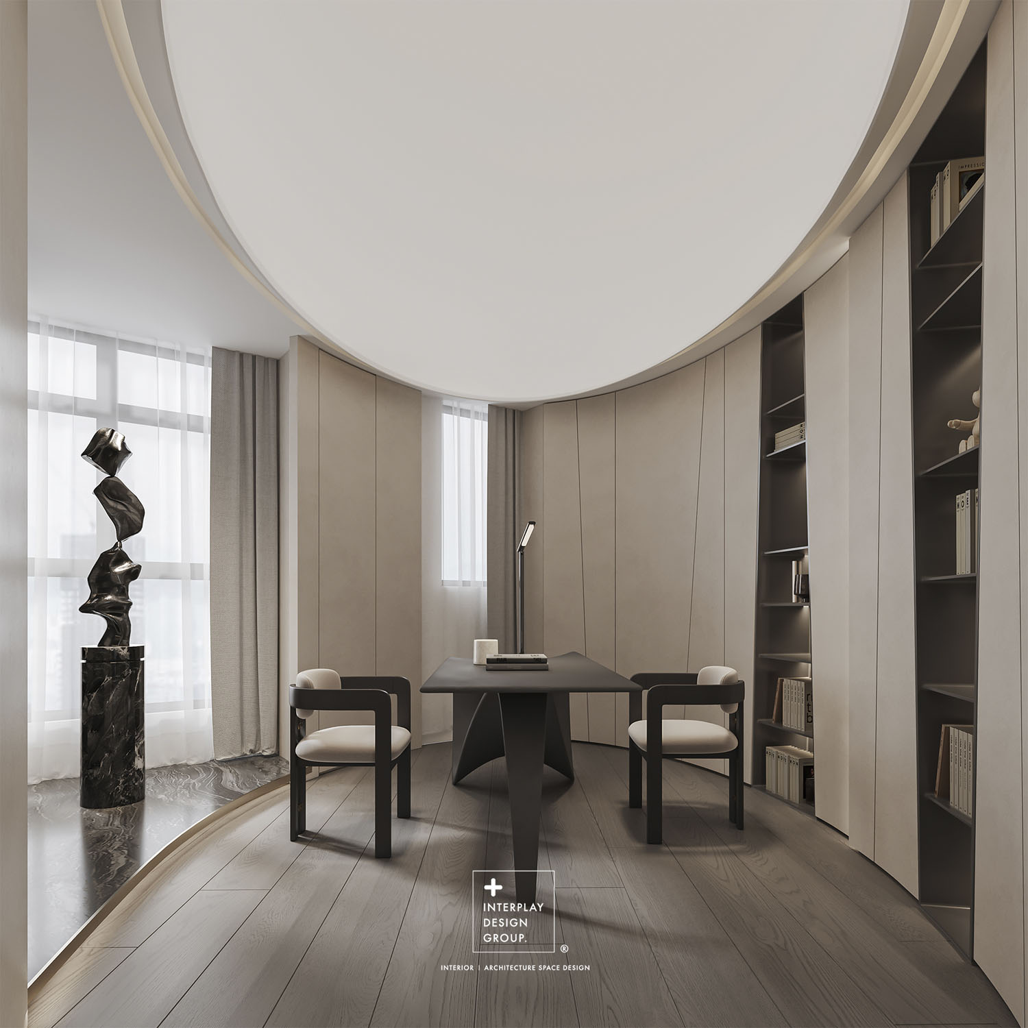 特殊的波浪紋玻璃隔間,則為空間注入了水的靈動,讓視線在虛實之間穿透、遊走,既保有通透的呼吸感,又劃分出層次分明的機能場域。