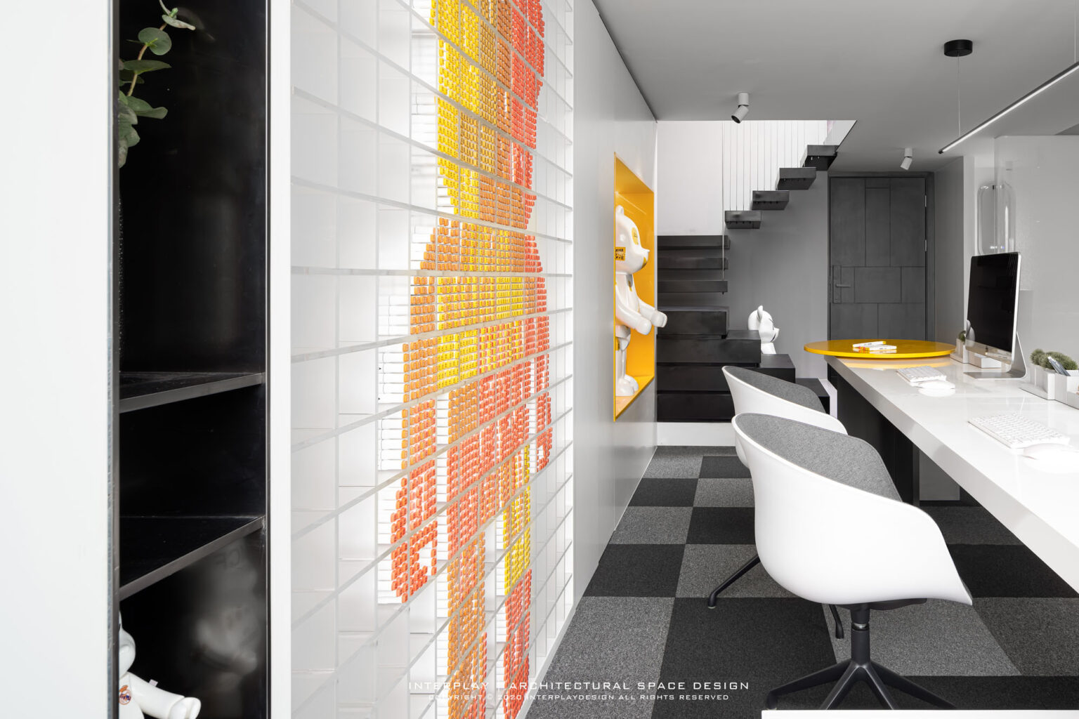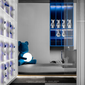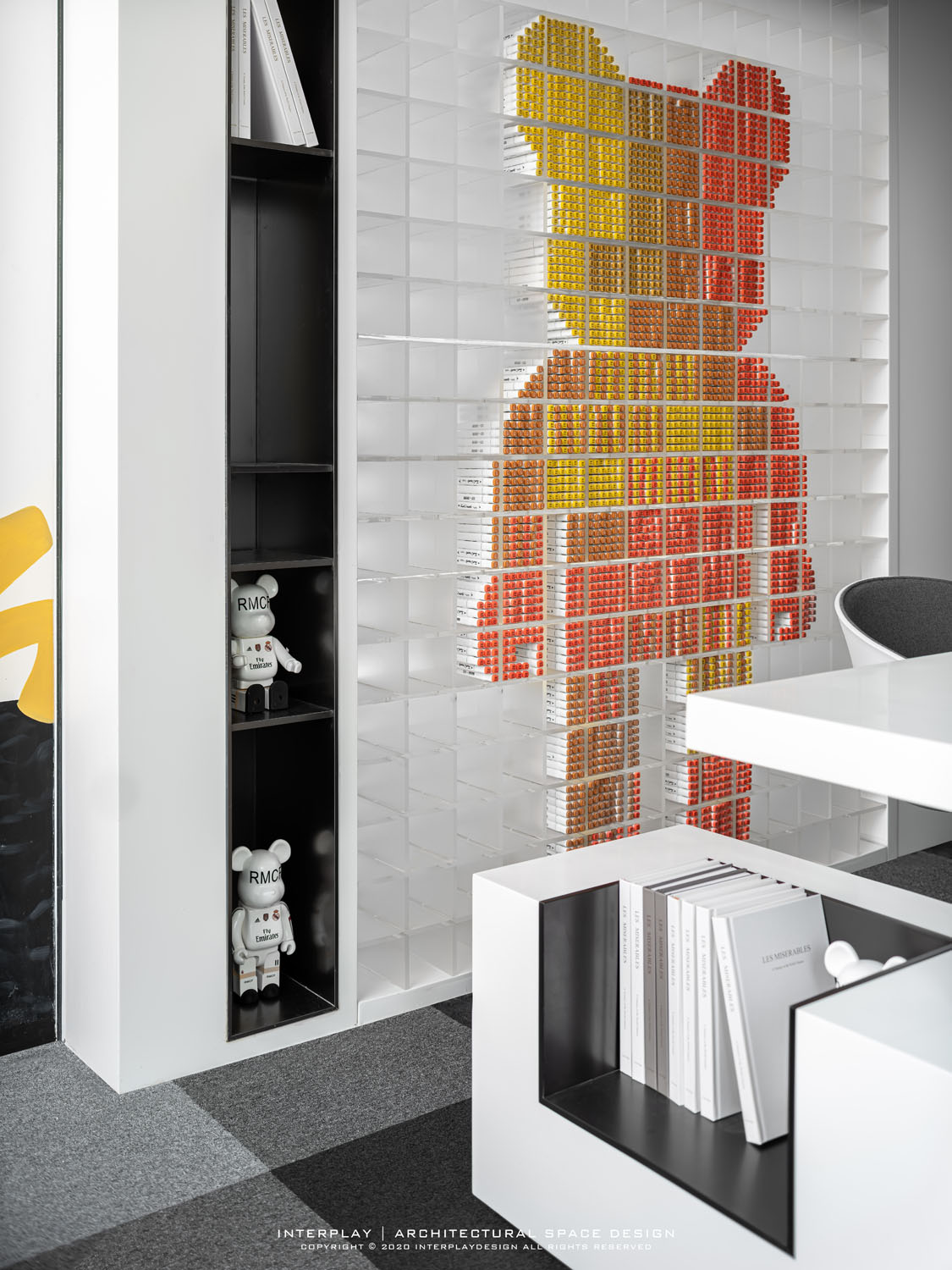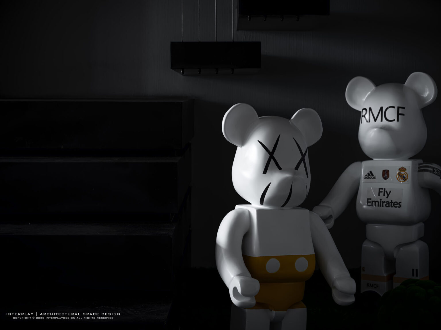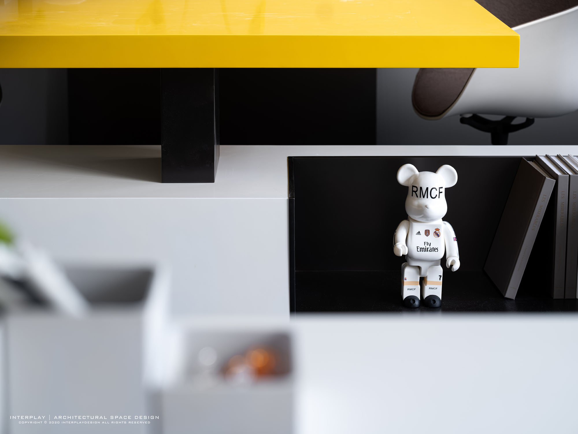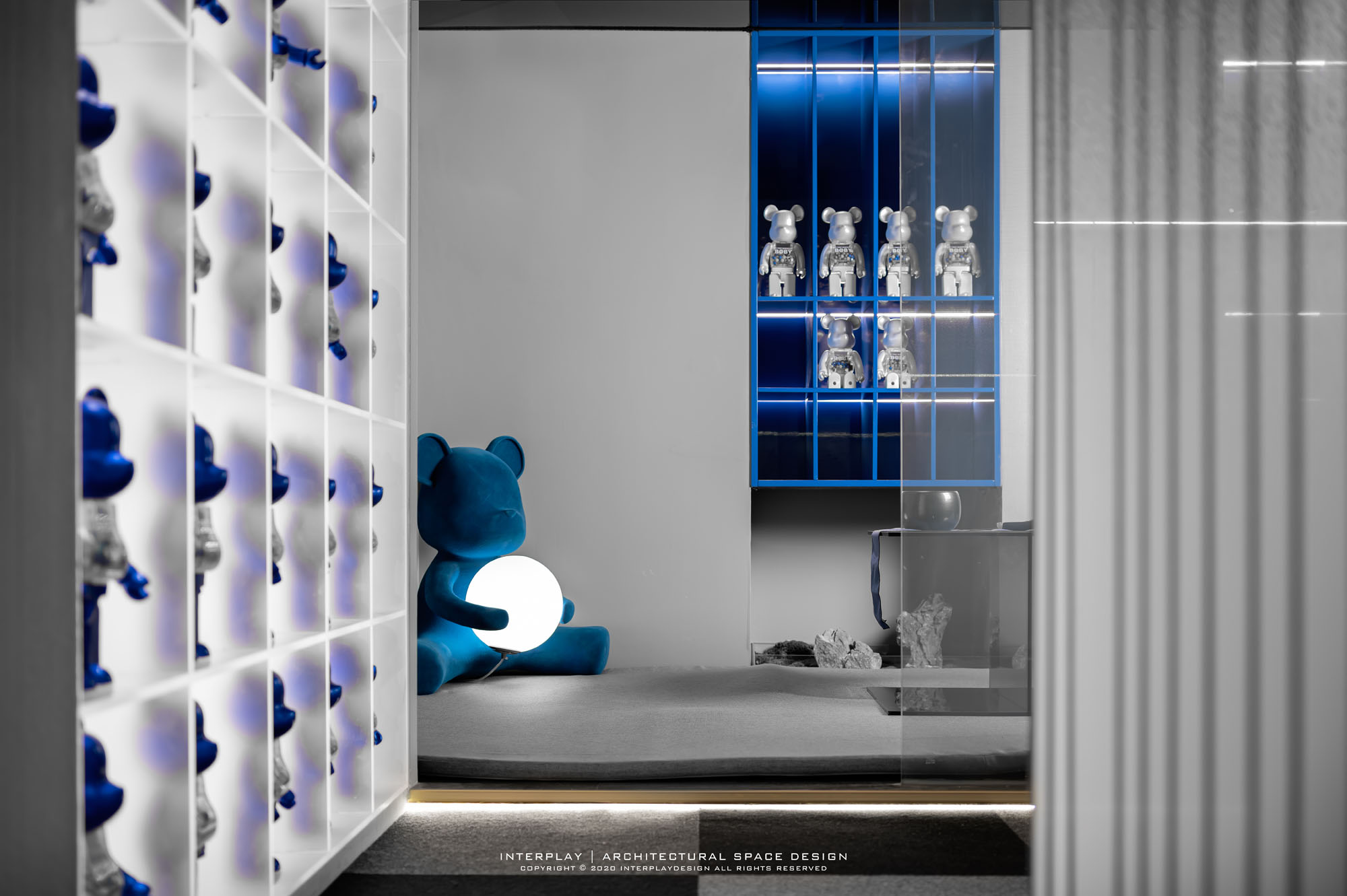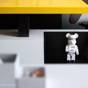 潮流元素貫穿整個設計,從牆面收納到大型公仔,收藏即是工作,也是個人品味的展現。