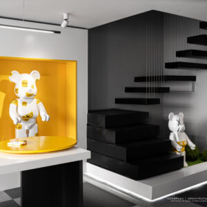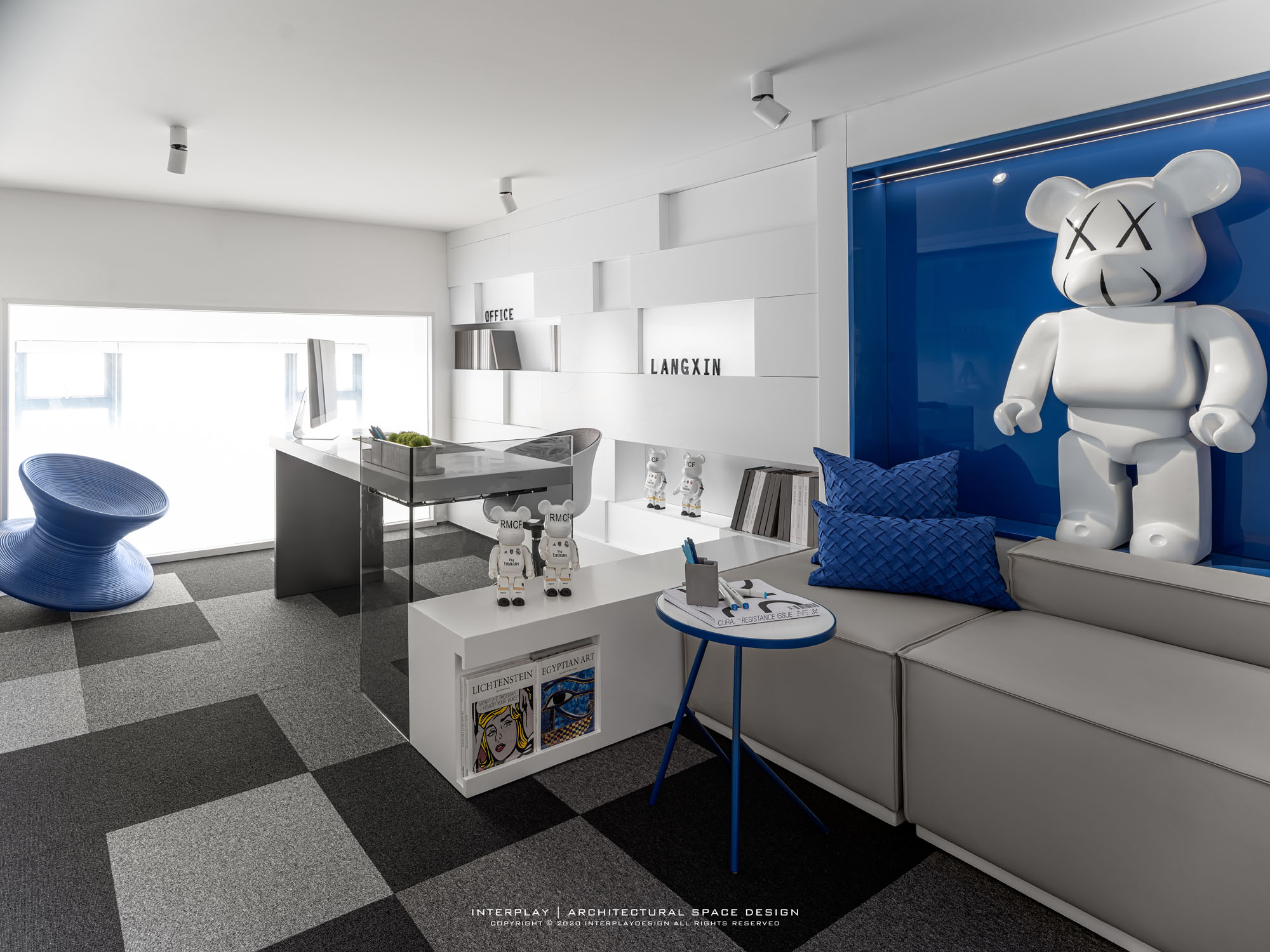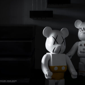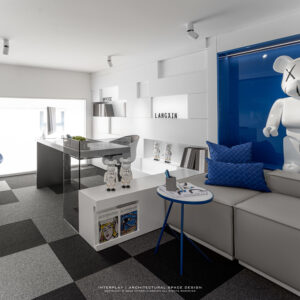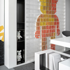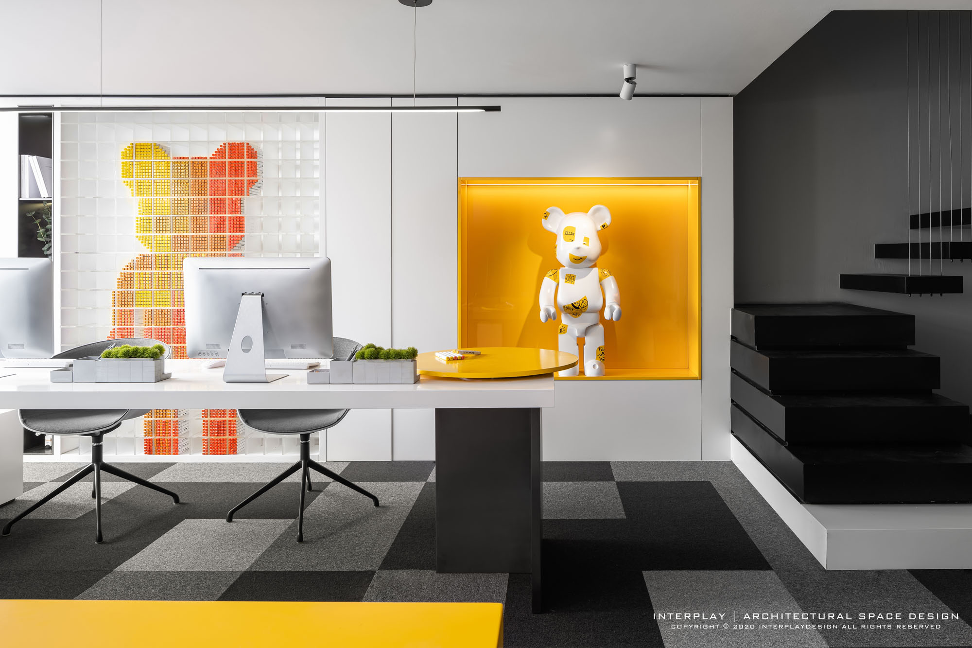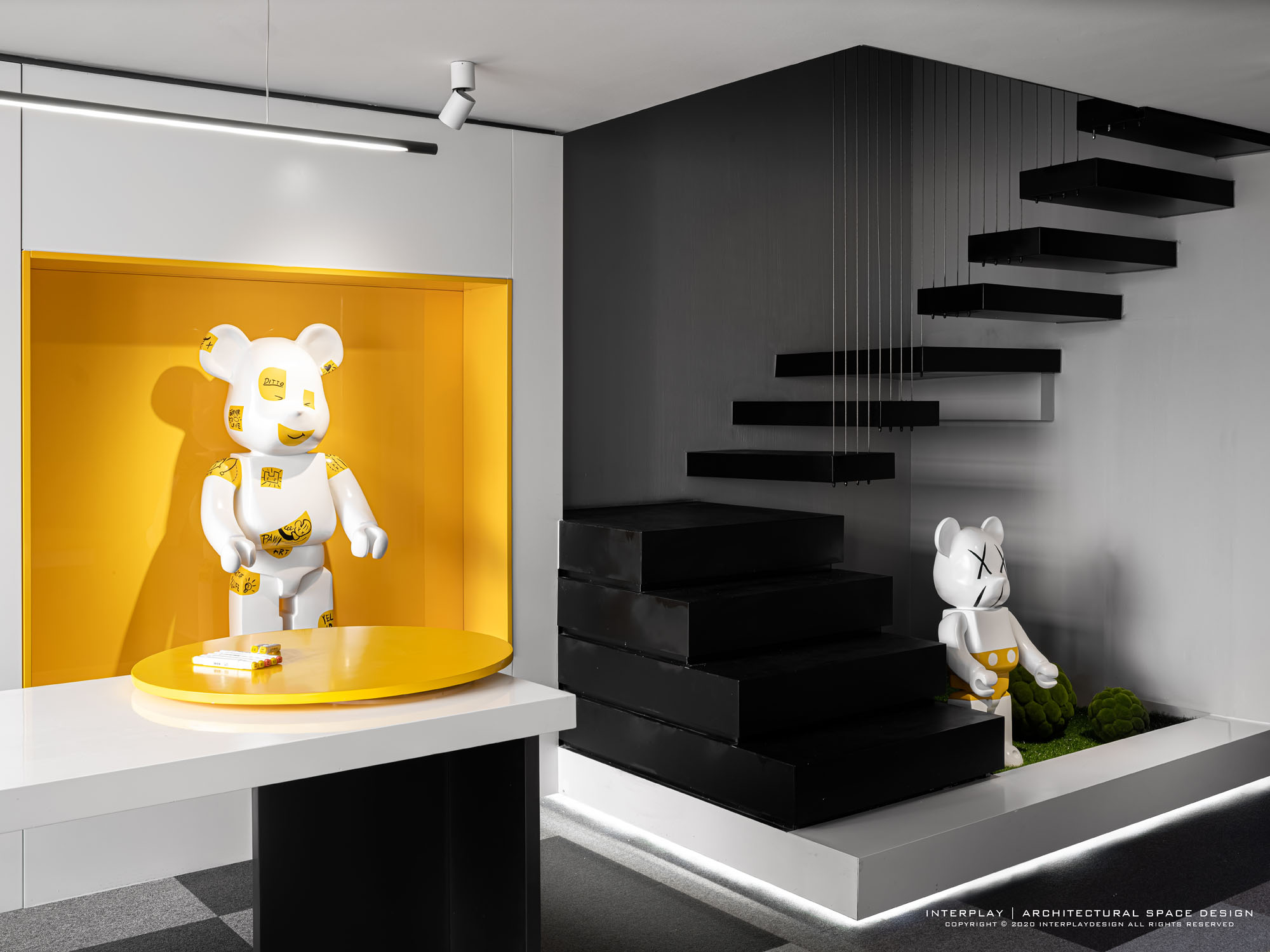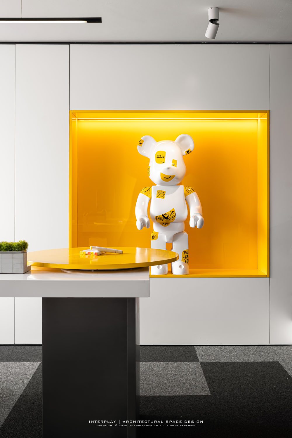 潮流元素貫穿整個設計,從牆面收納到大型公仔,收藏即是工作,也是個人品味的展現。