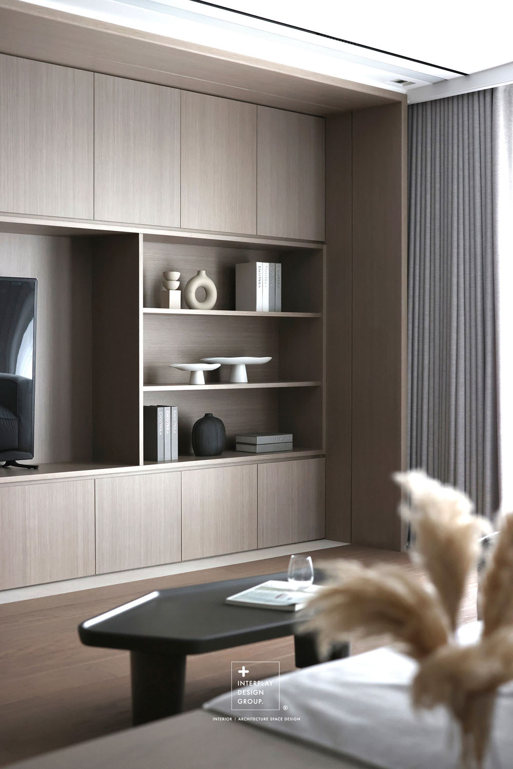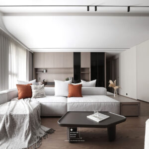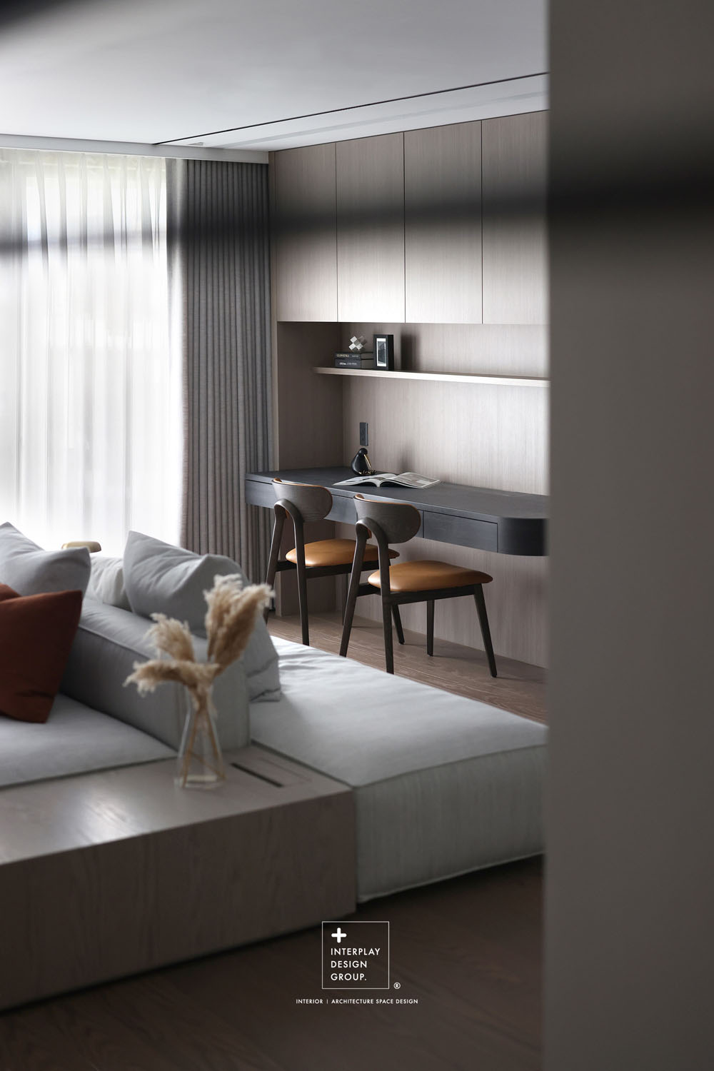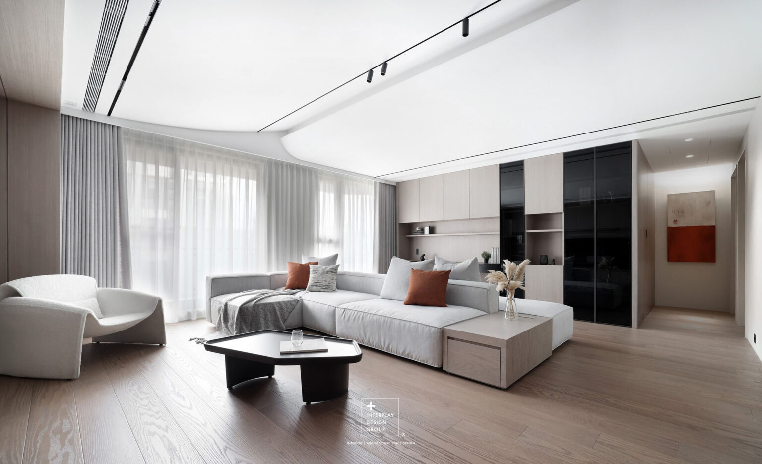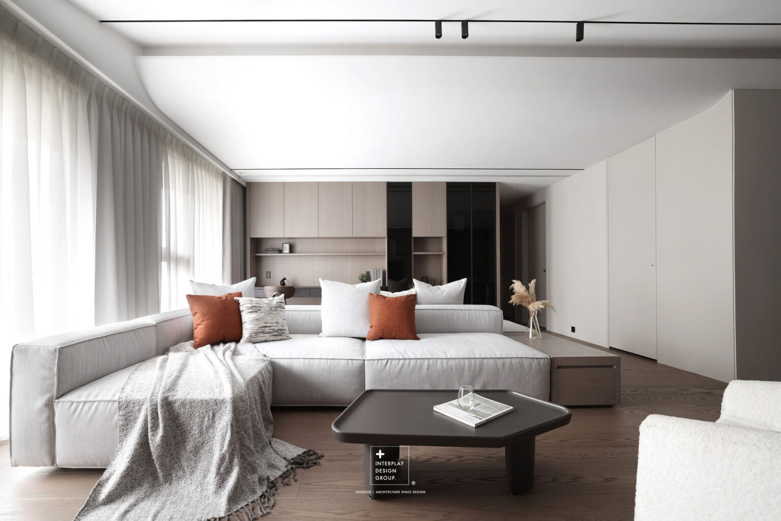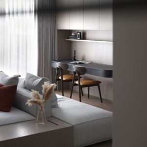 本案座落於內湖區《華固馥儷》,在 60 坪的空間尺度下,我們以大地色系與極致灰調為基底,將空間想像為畫布的留白,將生活的喧囂過濾,保留大面積採光,透過設計將窗簾映出的光影隨時分推移,與牆面交織出如律動般的層次,也讓空間有了呼吸的頻率,也讓光成為家中不可或缺的設計語彙。