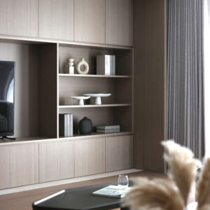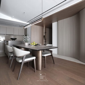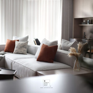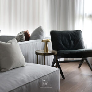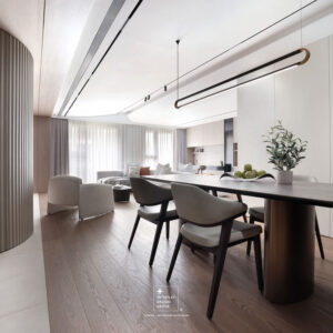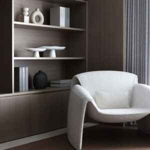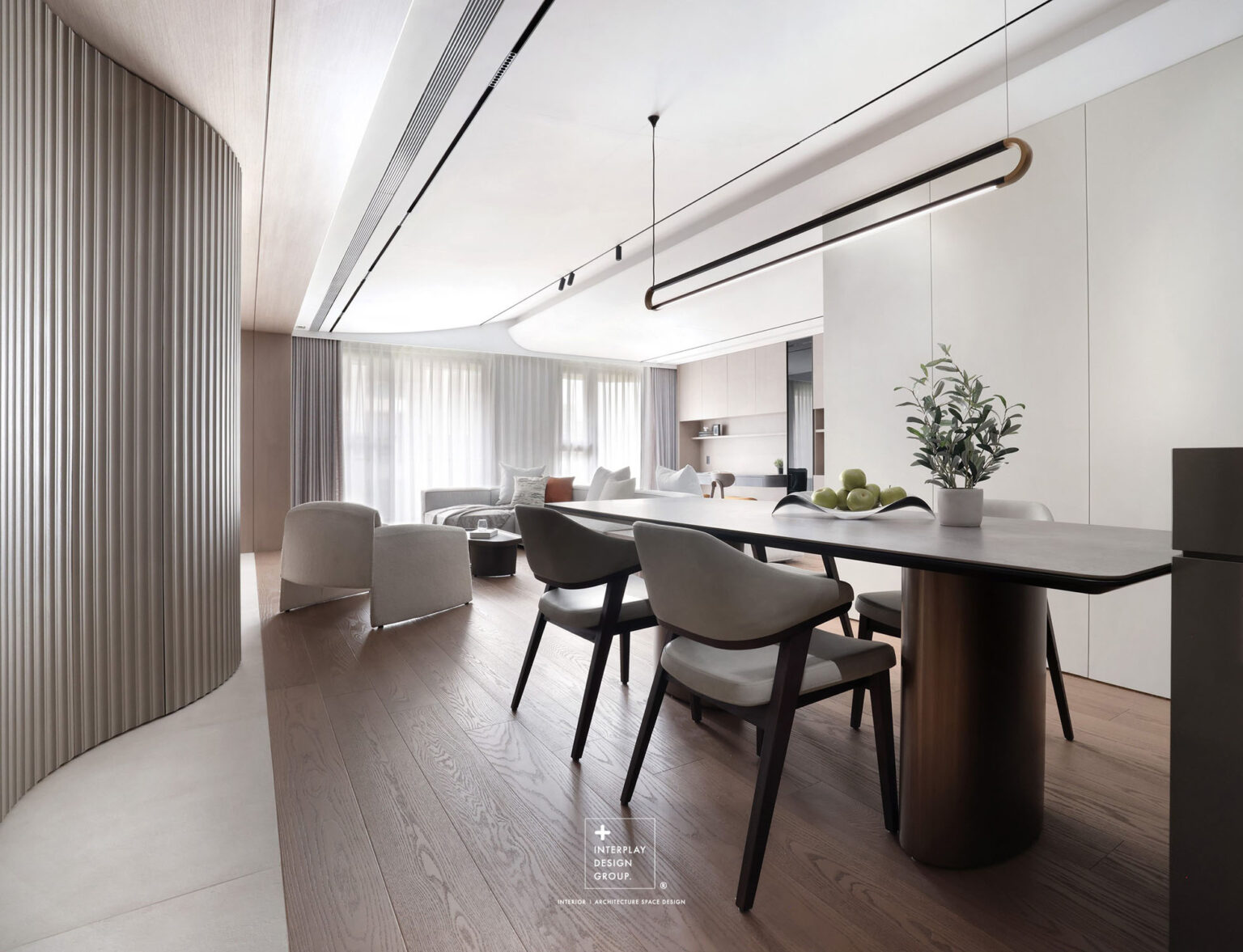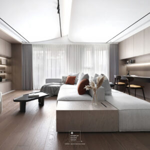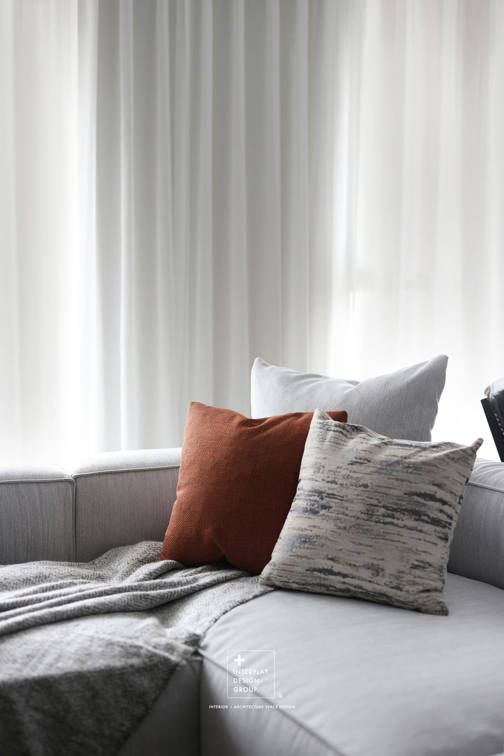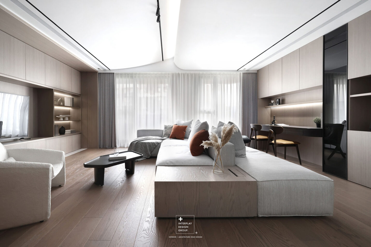 本案座落於內湖區《華固馥儷》,在 60 坪的空間尺度下,我們以大地色系與極致灰調為基底,將空間想像為畫布的留白,將生活的喧囂過濾,保留大面積採光,透過設計將窗簾映出的光影隨時分推移,與牆面交織出如律動般的層次,也讓空間有了呼吸的頻率,也讓光成為家中不可或缺的設計語彙。